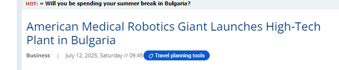 相关媒体获悉,全球手术机器人领军企业直觉外科(Intuitive Surgical)其位于保加利亚普罗夫迪夫地区Parvomay镇的新生产基地近日正式投产,标志着这家美国医疗科技巨头在欧洲市场的战略布局迈出关键一步。作为其在保加利亚的首个制造基地及欧洲第三家工厂,该设施将专注于为旗下旗舰产品达芬奇手术系统生产3D内窥镜和微型光学组件,直觉外科打算增加机器人手术器械和消耗品(如手术单和罩子)的制造,未来约70% 的内窥镜产量将来自保加利亚,项目总投资额达4200万欧元。