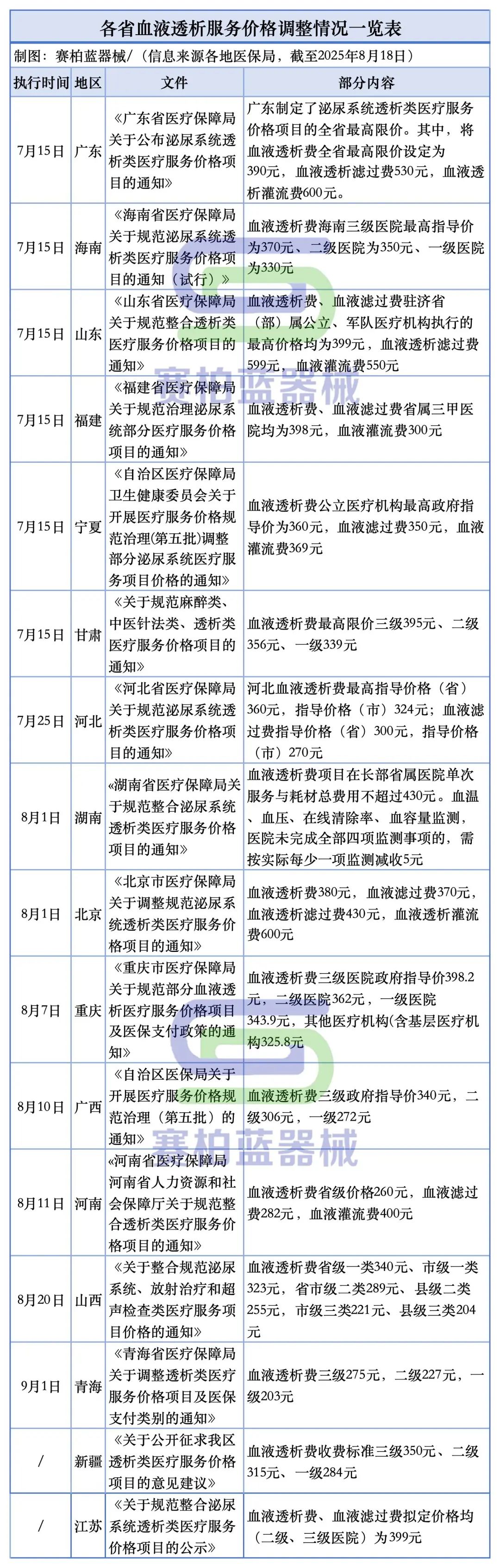 血透耗材、设备、服务全线降价,服务价格已降至138元。