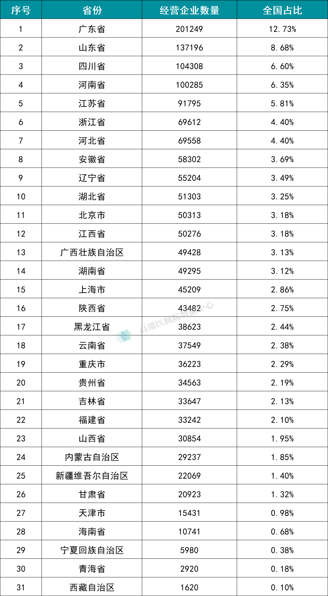 图表4:全国31省份经营企业数量