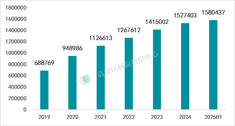 2019-2025 年上半年,全国医疗器械经营企业呈 “总量增长、品类结构待优” 态势。据高端医械院数据,截至 2025 年 6 月,企业总数达 158.04 万家,较 2024 年底(152.74 万家)增长 3.5%,延续六年增长;但品类分化显著:仅经营 Ⅲ 类企业 11.15 万家,降 1.1%;同时经营 Ⅱ、Ⅲ 类企业 39.52 万家,降 0.2%,高风险品类经营主体收缩,为行业结构调整埋下伏笔。