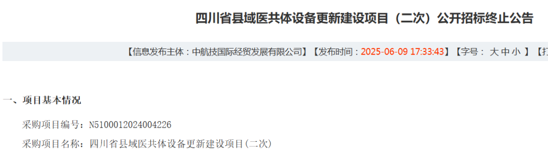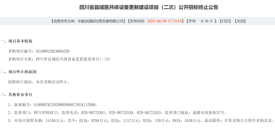 据查证这已是该项目第二次遭到投诉。目前接财政厅通知,四川省县域医共体设备更新建设项目(二次)已终止。