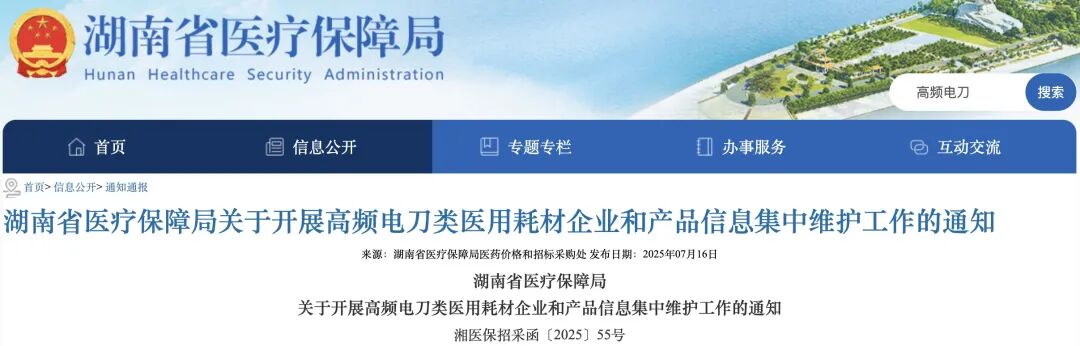 7月16日,湖南医保局发布《关于开展高频电刀类医用耗材企业和产品信息集中维护工作的通知》(简称《通知》)。