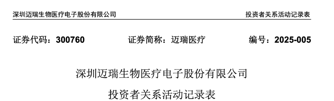 8月28日,迈瑞医疗发布最新医疗器械创新网网活动记录表,对2025年上半年业绩以及未来布局进行回应。