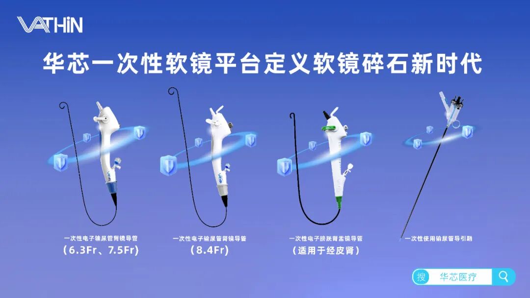 目前,泌尿领域是一次性内镜最成熟的医疗器械创新网,创新成果也最为集中。以华芯医疗一次性电子输尿管软镜为例,华芯一次性电子输尿管肾镜导管具有多种规格(6.3Fr,7.5Fr,8.4Fr), 结合华芯一次性使用输尿管导引鞘,真正实现了边碎石,边排石的效果,为碎石诊疗提供更全面的一站式解决方案。