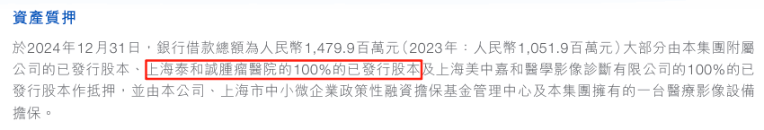 泰和诚肿瘤医院100%股份等资产抵押,向银行借款约14.8亿