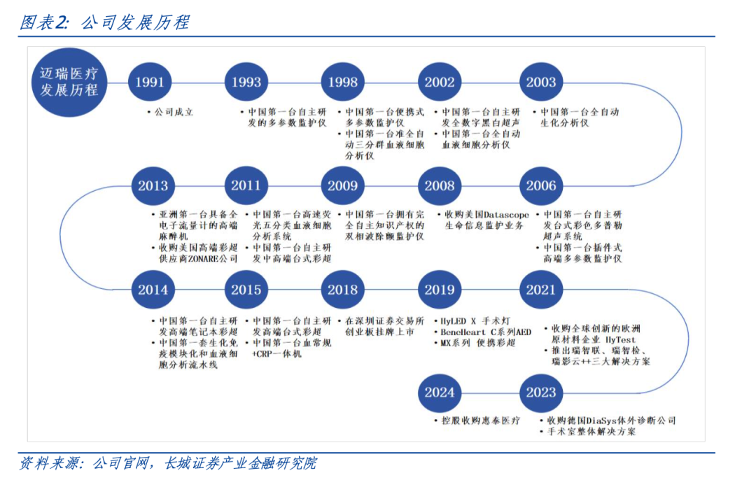 但如果从迈瑞的发展路径来看,其并非是突然爆发的公司,而是沿着清晰的里程碑路线,其发展的三十年几乎与中国当代医疗器械行业发展历史重合。