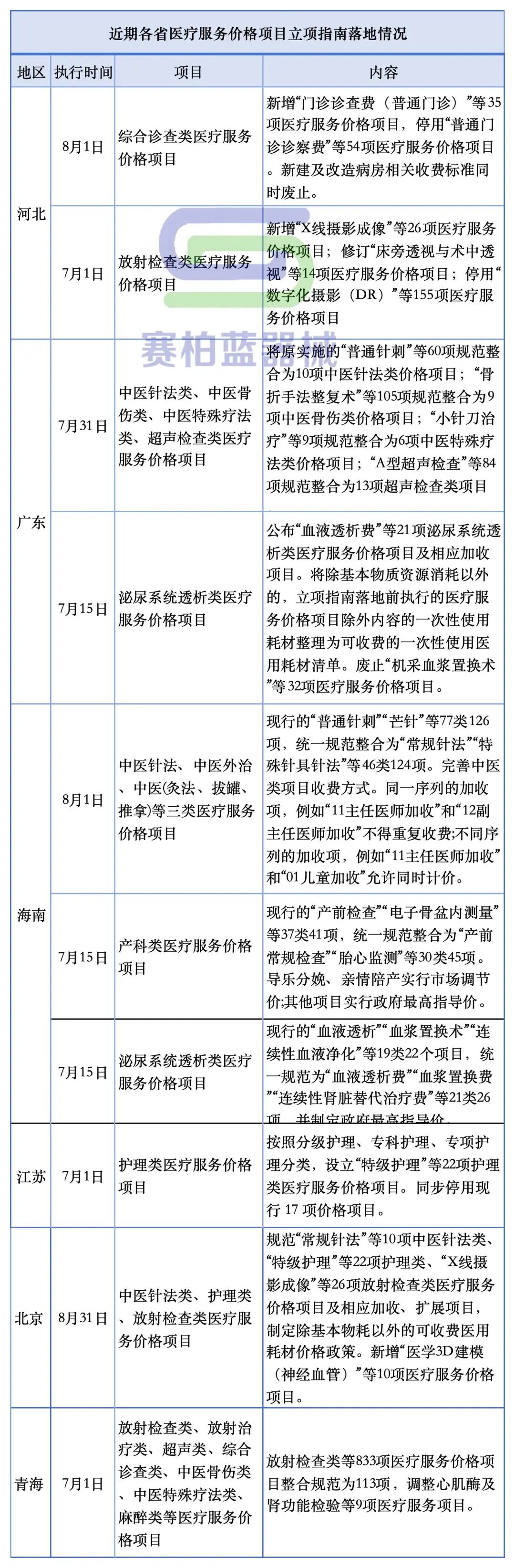 地方层面正在快速跟进。近一周内,河北、广东、海南等多地出台方案,对接制定超声、中医、综合检查等多类医疗服务价格,调整完善项目方案。