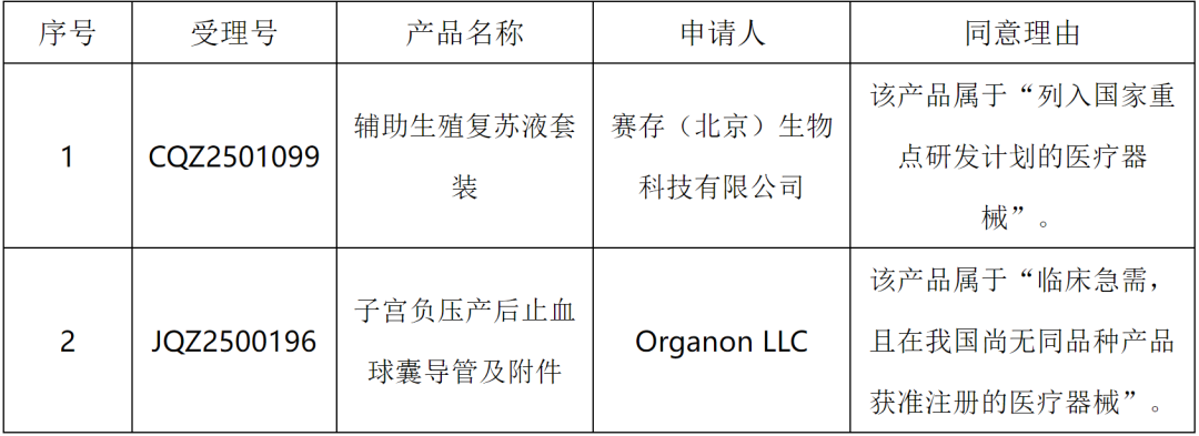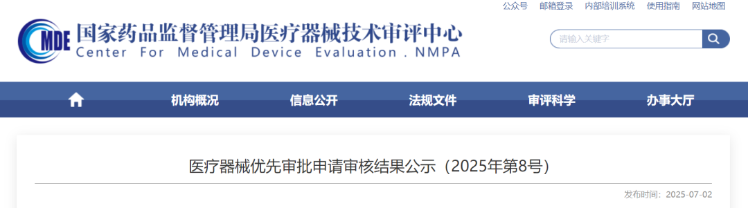 依据原国家食品药品监督管理总局《医疗器械优先审批程序》(总局公告2016年168号),对申请优先审批的医疗器械注册申请进行审核,现将符合优先审批情形的项目予以公示,公示时间为2025年7月2日至7月9日。