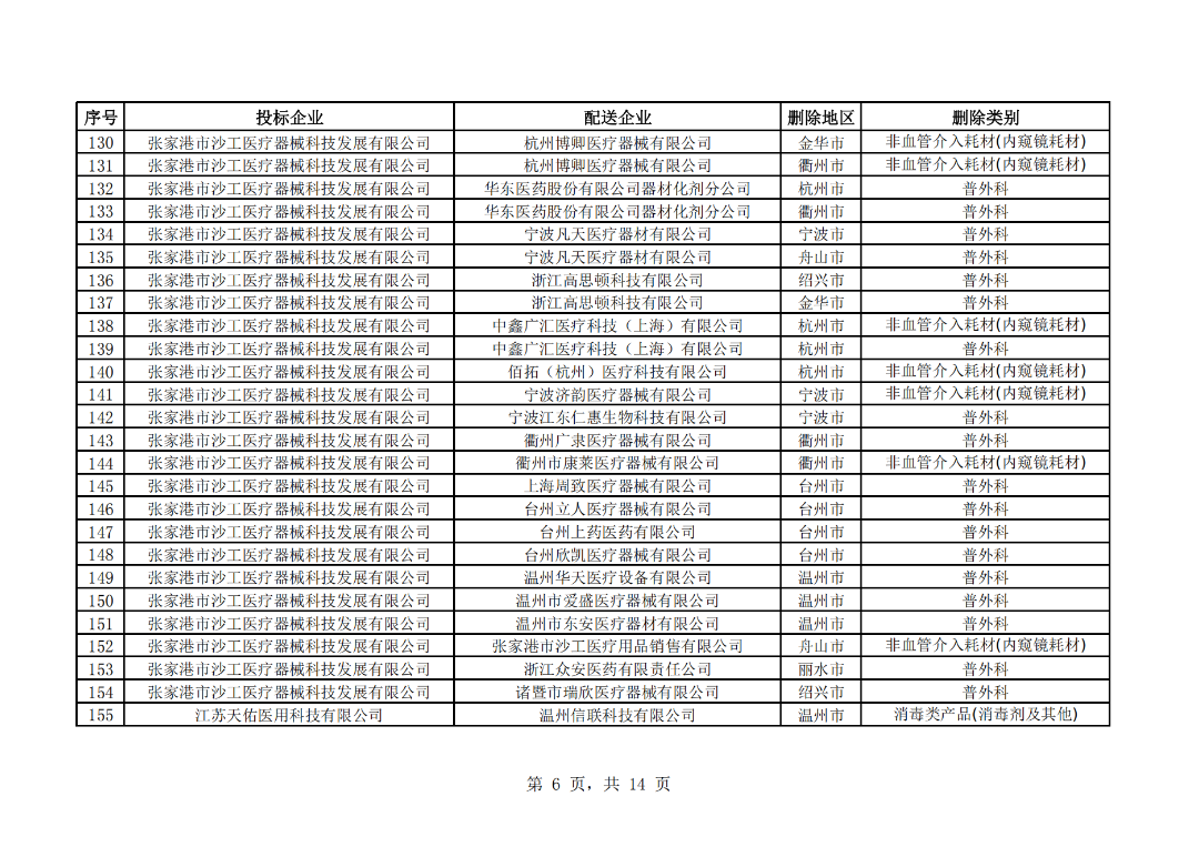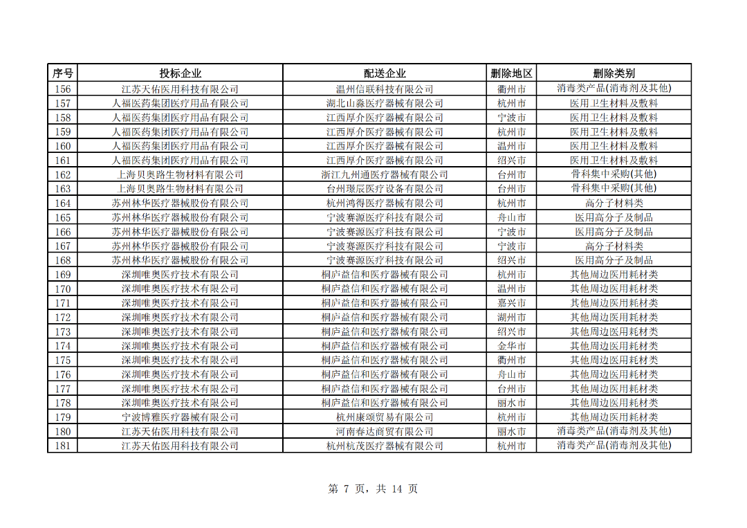 还有南京市,6月发布的《关于暂停部分供应服务企业配送权限的通知》,上海誉源医疗设备有限公司等6家医用耗材供应服务企业因未履行协议,存在配送率低于70%或申请率低于30%的情况,被暂停一个季度向南京地区医疗机构的配送权限。