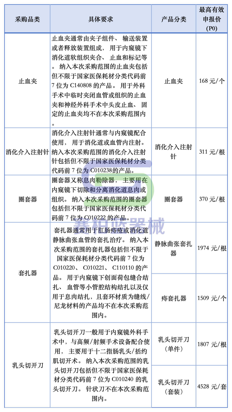 采购品种范围包括止血夹、消化介入注射针、圈套器、乳头切开刀。