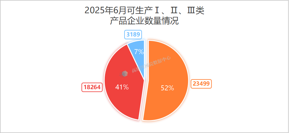 其中,可生产Ⅰ类产品的企业23499家,较2024年底上升3.20%。可生产Ⅱ类产品的企业18264家,可生产Ⅲ类产品的企业3189家,分别增长1.56%、2.38%。