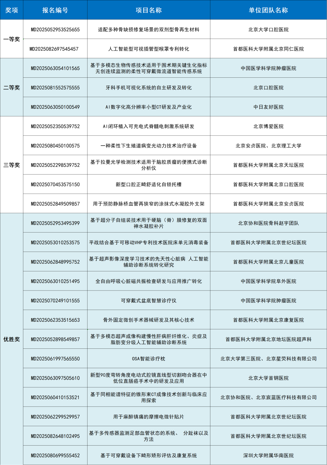 为深入贯彻国家创新驱动发展战略,进一步提升医药健康领域创新能力,发展新质生产力,深化医疗器械产业产学研用资各环节协作,激发临床医护人员的创新活力,助力首都高质量发展,2025年8月30日,第八届(2025)中国医疗器械创新网创业大赛大国医工(北京)医院专场赛成功在京举办。