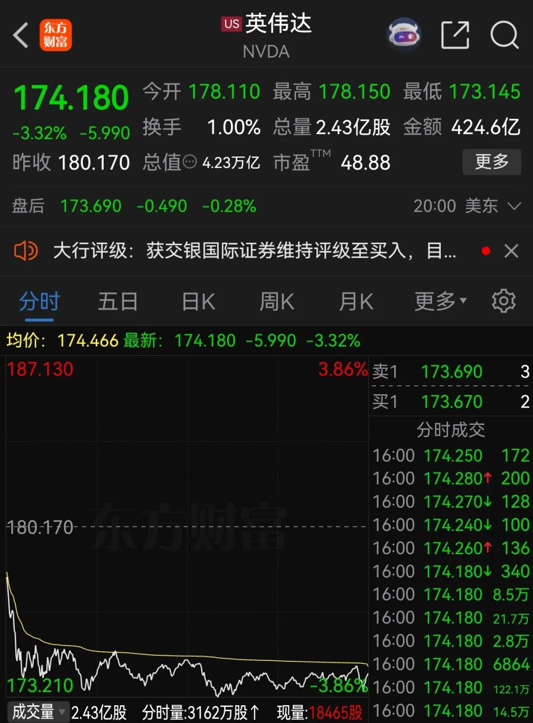 该公司周三公布的财报虽然营收利润均超出市场预期,但数据中心业务营收略低于预期,且该公司对三季度营收的指引仅略高于分析师预估。这未能满足投资者对于英伟达的高期待。